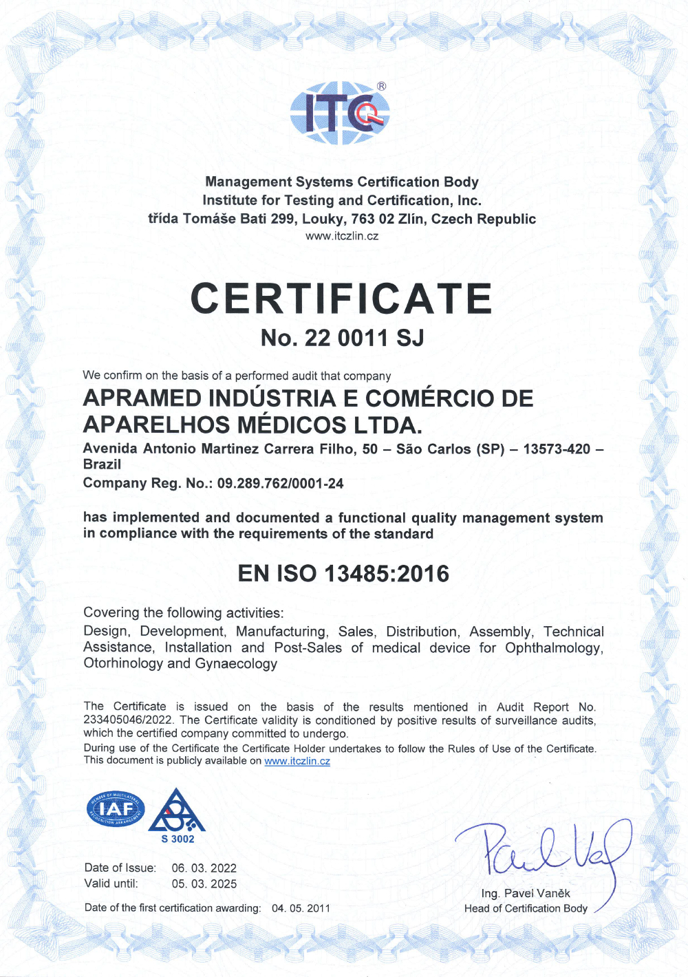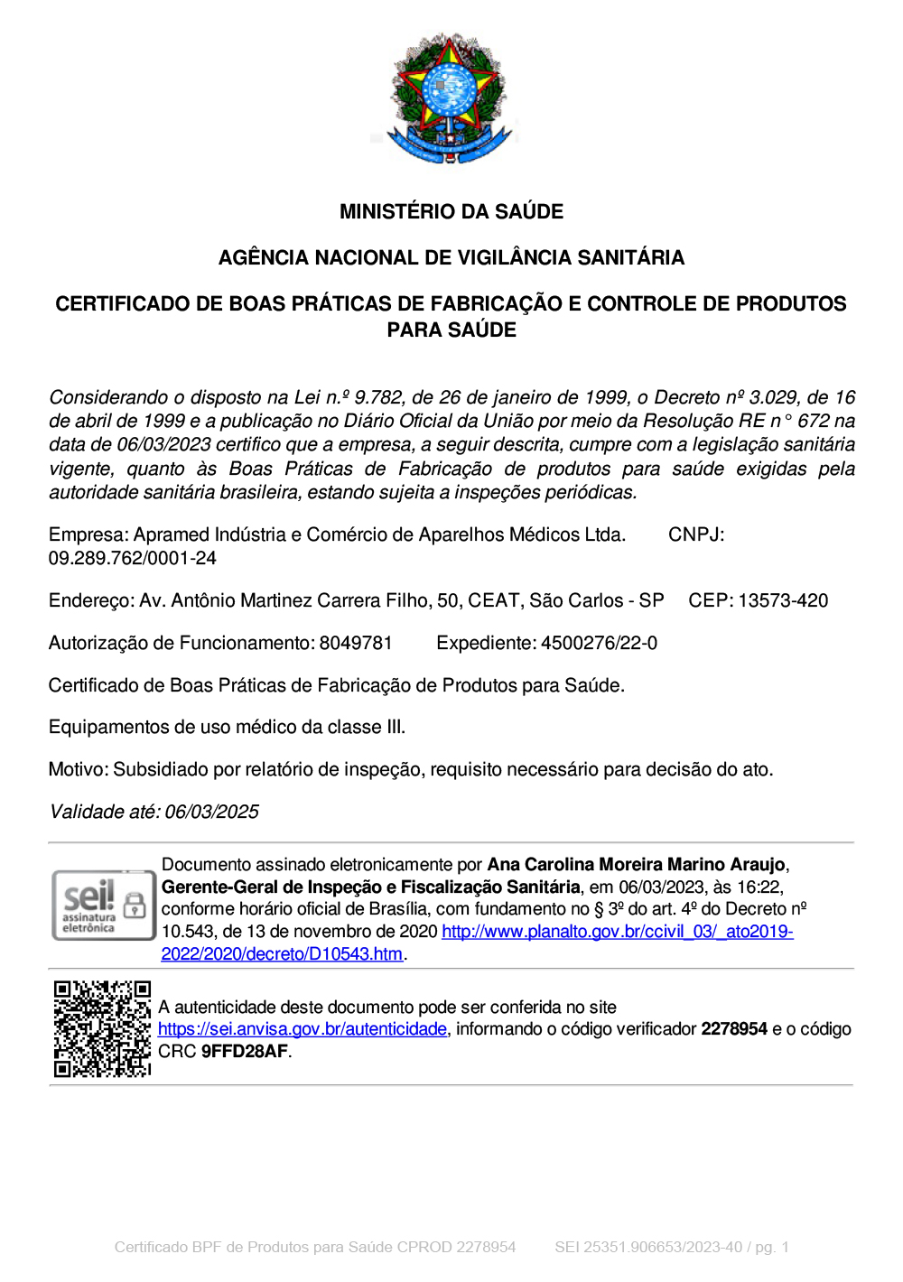 Fundada oficialmente em Março de 2000 na cidade de São Carlos/SP, a APRAMED EQUIPAMENTOS OFTALMOLÓGICOS é uma empresa 100% brasileira que possui em seu parque fabril com mais de 15.000m2 de área total. Conta com mais de 100 colaboradores diretos e, através de uma gestão altamente profissional, ampliou seus negócios tornando-se a maior indústria do setor na América Latina, exportando atualmente para mais de 26 países.