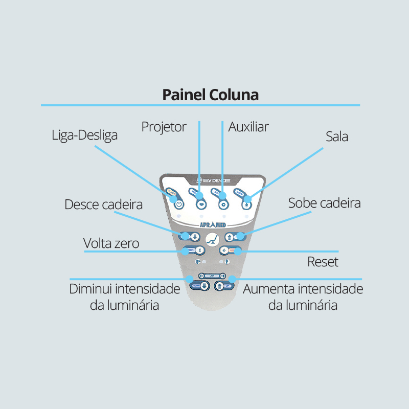 Todos os conjuntos da LINHA EVIDENCE, foram projetados para acomodar instrumento único, possuindo ligação direta dos aparelhos em sua caixa de comando, além de luminária pantográfica, sistema de trava do braço por esferas e trava de segurança.