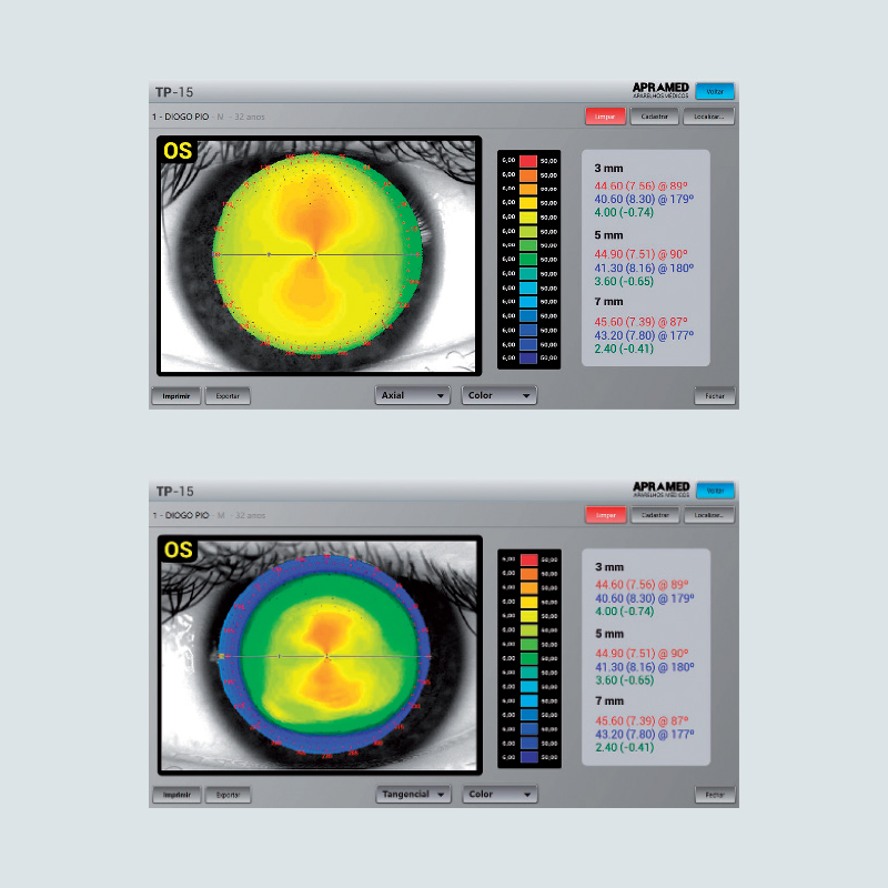 O TP15 computadorizado utiliza anéis de Plácido para mapear a superfície