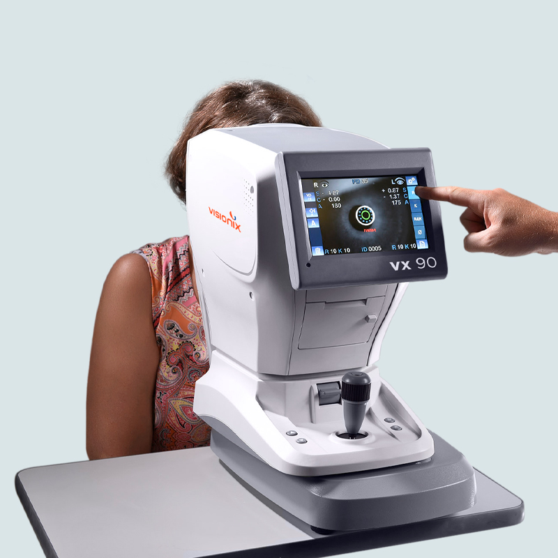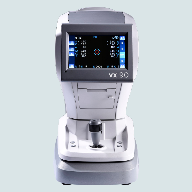 O VX 90 é um dispositivo de diagnóstico com funcionalidades de Refração e Ceratometria, bem como de detecções precisas de cataratas.