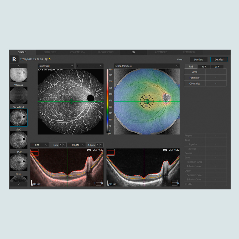 Além disso, está preparado para módulos opcionais como Angiografia OCT, Topografia T-OCT™, Biometria B-OCT® e cálculo de LIO.