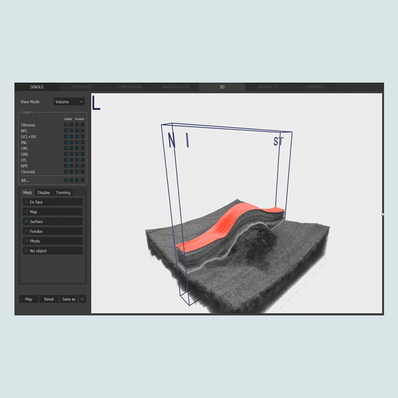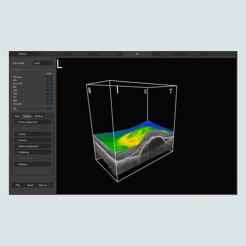 O REVO 80 é um OCT de domínio espectral (Spectral-Domain OCT) com óptica redesenhada para atender às demandas da prática diária em consultórios de oftalmologia.